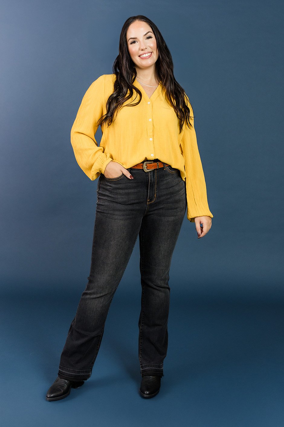 I absolutely love the Chasing Light shirt! It’s made from high-quality material that’s soft and lightweight. The fit is perfect, and I especially love the length—it’s just right. I’m wearing a true-to-size 34, and it fits wonderfully. This shirt is incredibly versatile—I can wear it to work for a polished look or dress it down for casual outings. It’s a great addition to any wardrobe!
