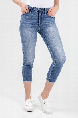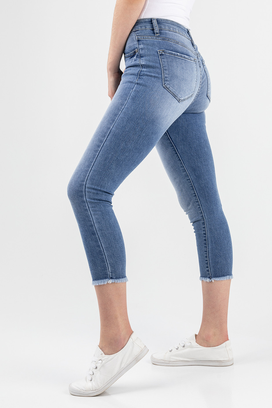 Versatile, stretchy and oh so cute, these denim capris are where classic meets new age! These feature a frayed bottom that can be worn straight-legged or cuffed and look great with anything from a basic tee and flip flops to a blouse and a wedge!