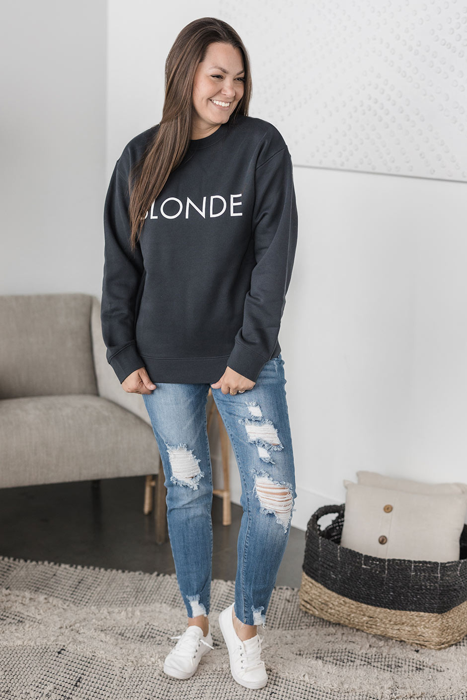 Calling all blonde babes! Rock this cozy fitting crew neck sweatshirt with pride. Pair this graphic sweatshirt with basically anything, and you're all set! Grab one for you and all your girls! <3