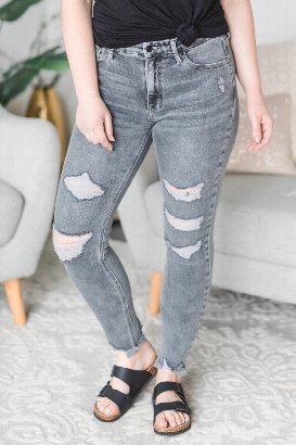 With a high rise, frayed bottoms, and ankle-length fit, these are the ideal jeans to wear with booties or sneakers! Featuring minor distressing and stretch, they're perfect for a night on the patio with your girlfriends.