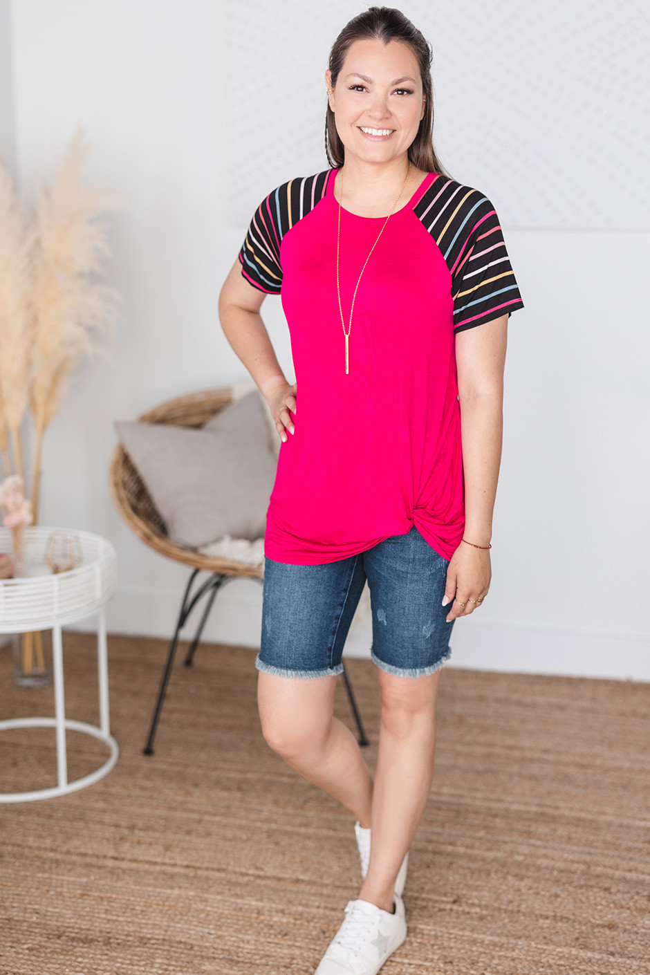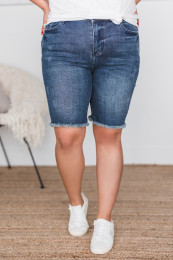 I love a good Bermuda-style short, especially when they're Judy Blue! These are super comfy, nice and stretchy and feature a unique frayed bottom hem. I love the fact that they feature a tiny bit of distressing but no actual rips. I am wearing the size S and they fit perfectly!