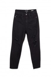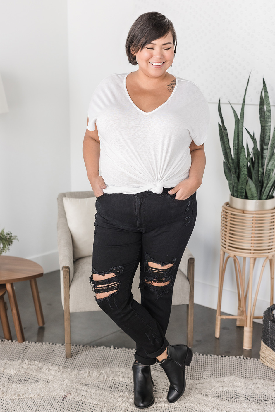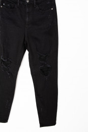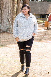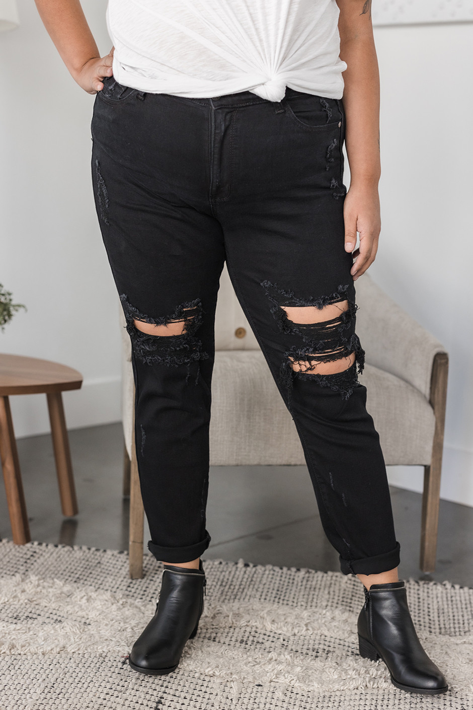I love black denim, especially heading into the fall! This pair has the perfect amount of distressing and more of a straight leg than skinny! They are super stretchy and have a nice high waist! I am wearing a size 13 and it's a great fit!
