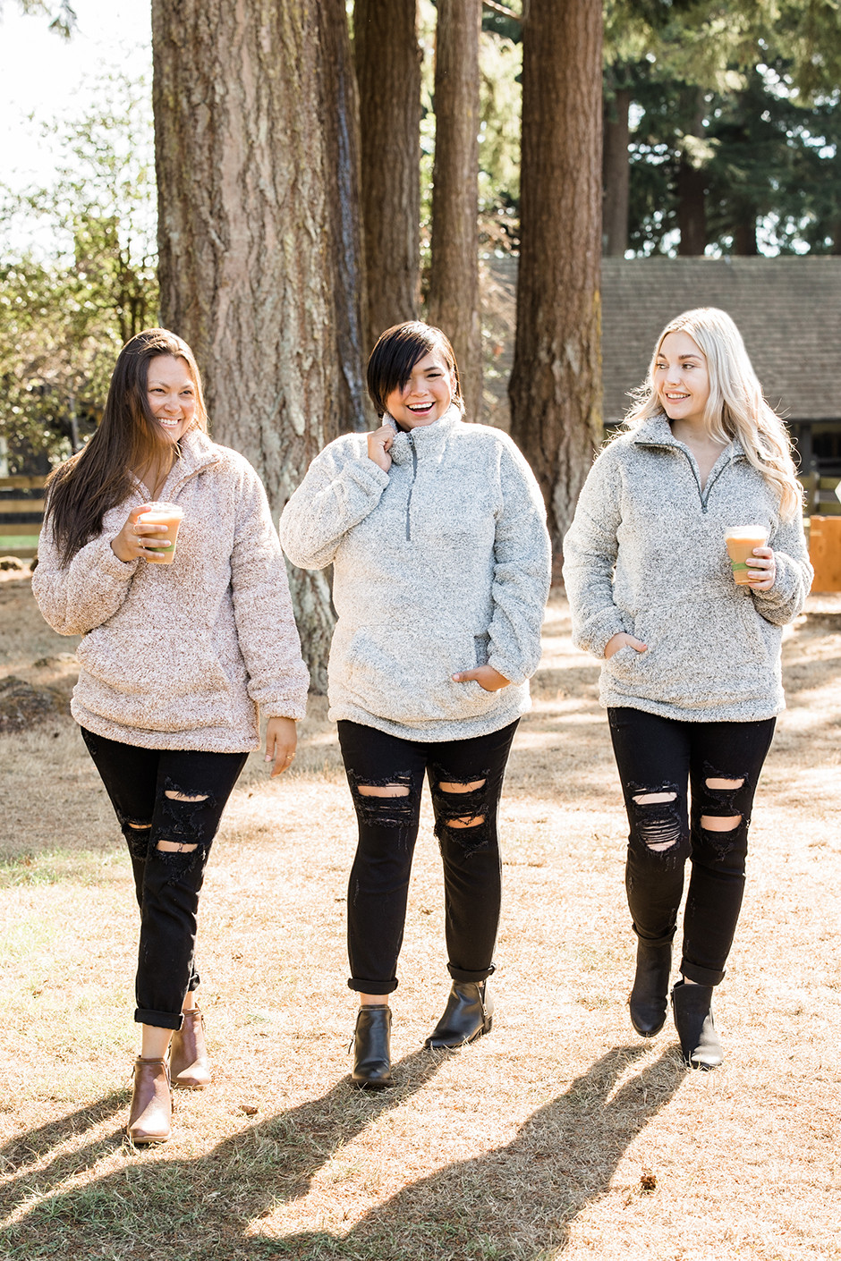 You guys, these are going to be my fall staple! I love black jeans, especially when they are this comfortable. They are a little loose but still nice and comfy, I could easily size down to a 3. I am wearing a size 5 here. They're stretchy and have distressing just in the knees. They are a medium-weight, with a true denim feel.