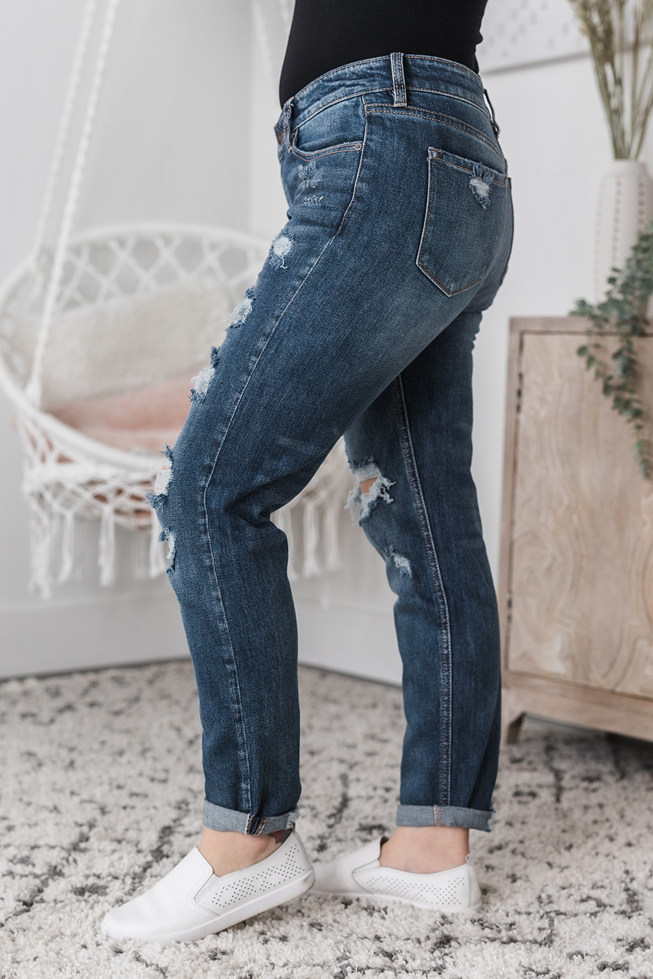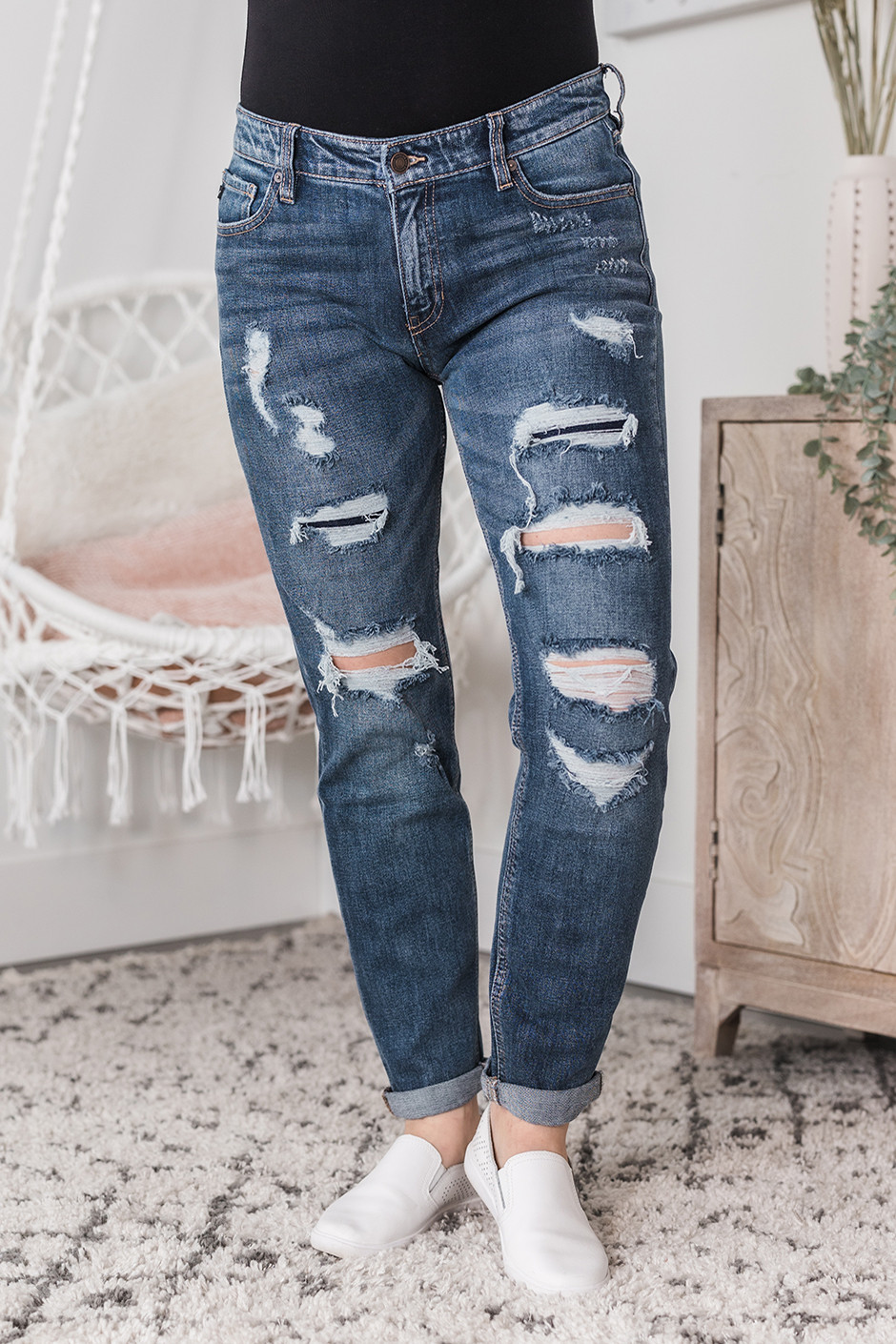 These jeans are perfect for those throw-it-on-and-go days! They feature just the right amount of rips and distressing, with a comfortable loose fit through the leg. Pair them with your fave chunky sweater and ankle boots, and top it off with a wide-brim hat for the perfect fall look!