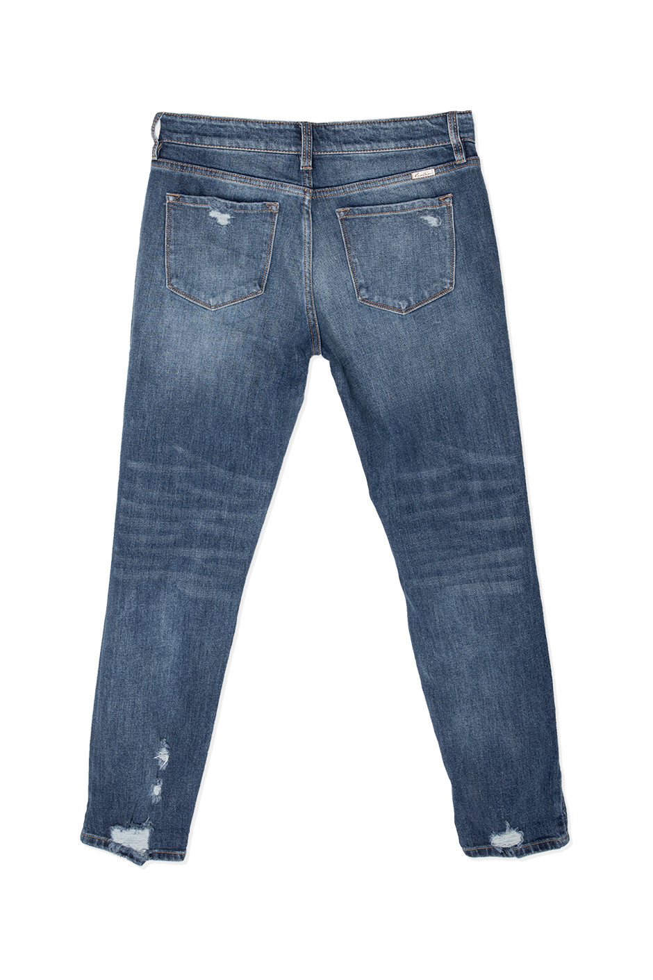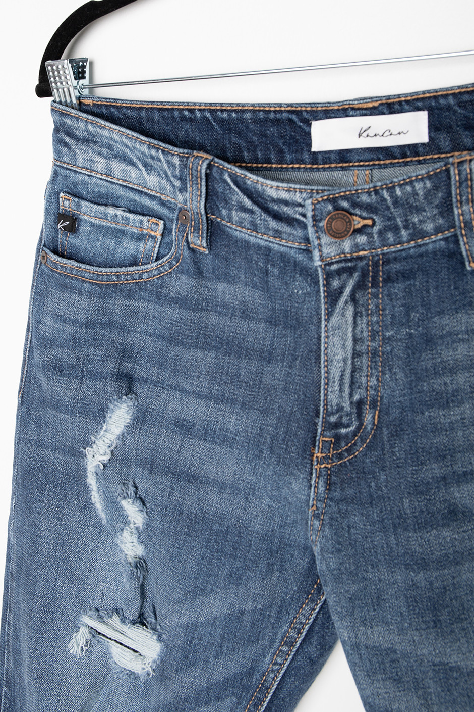 These jeans are perfect for those who don't like a high waist. These aren't super stretchy so I feel these are better for a non-curvy individual. I am wearing the size 7 and they are a little too tight in my waist so I will size up to a size 9. The same size I wear in Malibu's. I found the rise to be similar too despite them being Hammer and these being Kan Can. I still love these as they have cute distressing but they have the patchwork behind it to keep you warm! They feature a classic straight leg so they will be perfect for all of your casual looks!