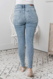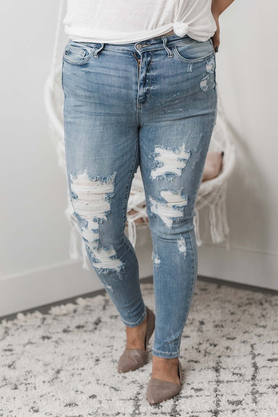 Obsessed would be an understatement! I'm wearing a size 5 in these gorgeous Judy Blue's and they fit amazing. I love this brand as I am curvy in the hips so the stretch factor works perfectly for my body shape. I can't resist a classic skinny, especially since all I'm wearing these days are boots! I love the wash too, these will definitely take you into spring and early summer!
