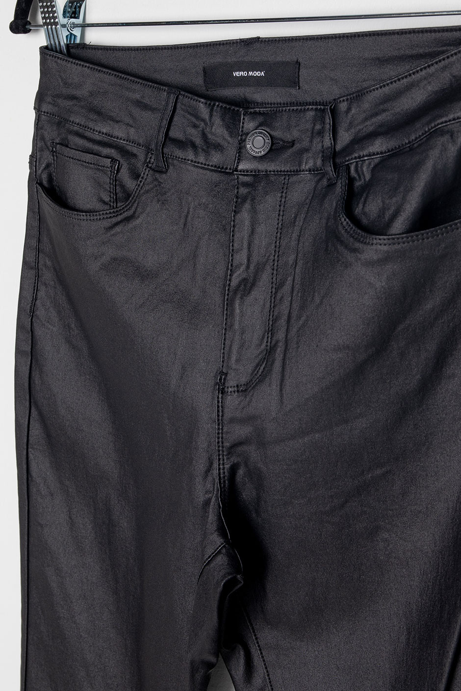 Ahhh these are literally the cutest and comfiest coated pants I have ever worn! I am wearing a sample medium and although they are super comfy, there is a bit of bunching in my crotch so I will be purchasing my true size small. They are lightweight and sooo stretchy and feature a slight flare, ideal for wearing with party heels/boots! They have a slight shine but nothing too flashy and are stretchy all around!
