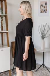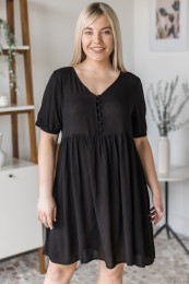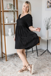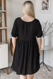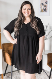 Gorgeous, flowy and feminine, what more could I ask for in a dress?! I love the babydoll style and the slightly shorter length on this one! I love having a girl, cute, shorter dress option as I don't have one really! The material is light & airy and slightly textured in feel. I find it to be relaxed in fit all around. The sleeves have an elastic around the cuff so you can wear the sleeve at a number of lengths. The buttons are also functional so feel free to pair it with a Live Freely Bra and unbutton them for a different look! I am wearing the size small and find it to fit with room but this is the intended fit of a babydoll style! Feel free to size down if in between.