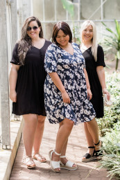 Flowy dresses are our favourite! They're flirty, flattering, and feminine. This one is no exception. From the V-neck to the waistline, this dress does not disappoint! Pair it with white sandals and a small purse, and a cardigan for when it gets chillier in the evening. A babydoll dress made for you, babydoll!