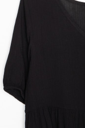 • V-neck with button-up closure
