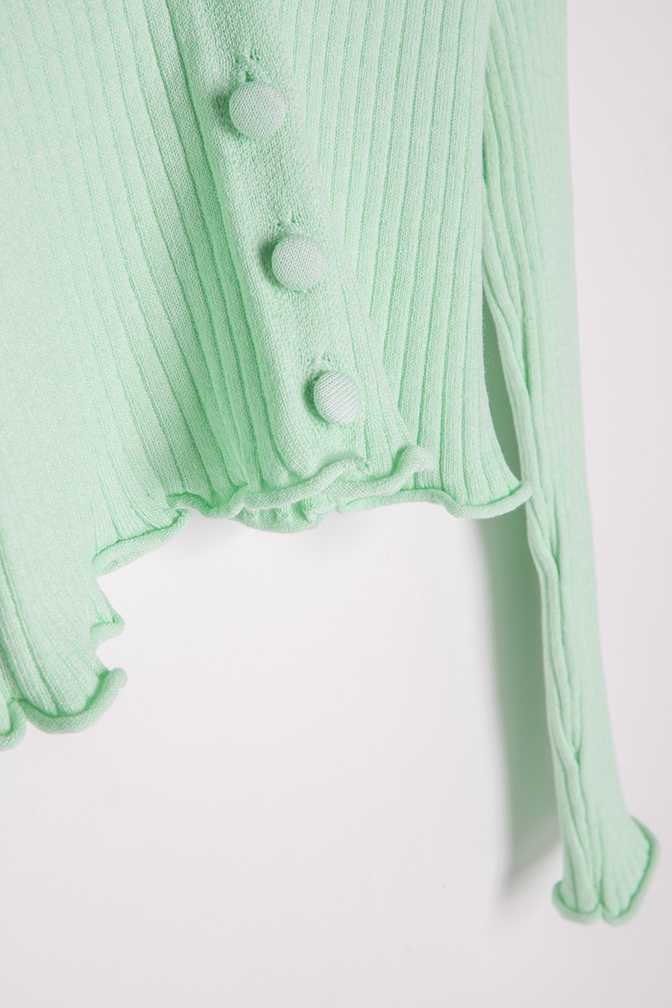 Have no fear, the 90s cardigan is here! From the cute little buttons to the lettuce-edge hems, this cardi does not disappoint. The ribbed knit provides ample stretch for maximum comfort. Wear it as is with a bralette peeking through, or layer it over a cute cami. You'll love this day-to-night piece!