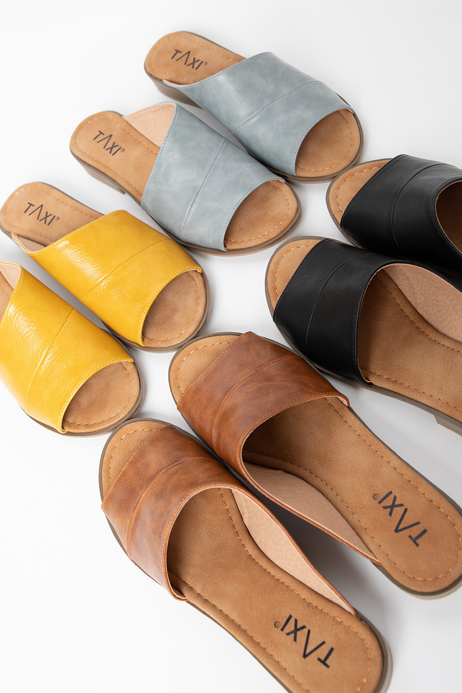 Slides will always have my heart! If I don't need to do up a laces/straps/buckles it is a win! These slides are a bit dressier than a typical sandal and I love that I can pair them with dresses, pants, capris, the sky is the limit! Taxi is one of my favourite brands we carry as they are always so fashionable and comfortable! I love that the style is asymmetrical, so unique! I am wearing a size 38 which is my true size with Taxi and I love how it fits!