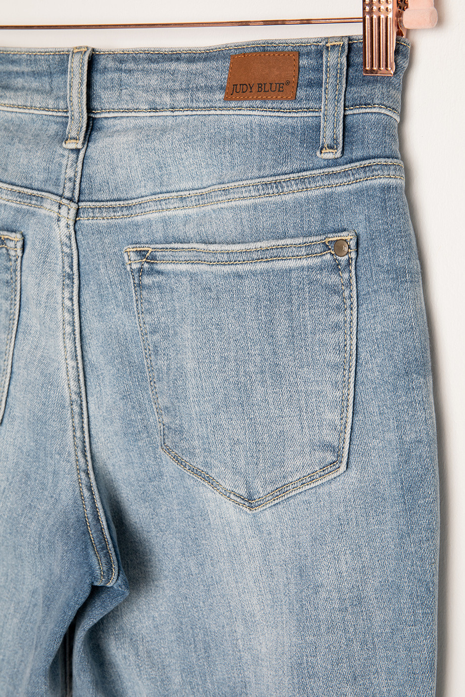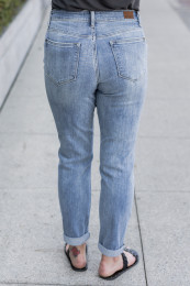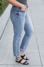 A non-distressed comfy jean!!! Rejoice!!!! These are Judy blue so you already know what I'm about to say... Stretchy, soft, purely amazing!! These are a super cute medium wash which has a unique tint to them. I absolutely love the look of them cuffed with these high-top sneakers or any sneaker really! I am wearing my true JB size 3 and found them to fit great. They are a little looser in the leg which gives off that super cute boyfriend style I know you will love!