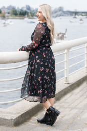 Who can resist a midi dress! This dress features a lightweight sheer fabric and it's lined so you don't need to worry about a slip. The gathering at the wrists gives that little extra that you don't expect! Plus, the elastic waistband is comfortable while adding a bit of shape! Whether you pair these with your favourite sandals or boots - you will feel like a star!