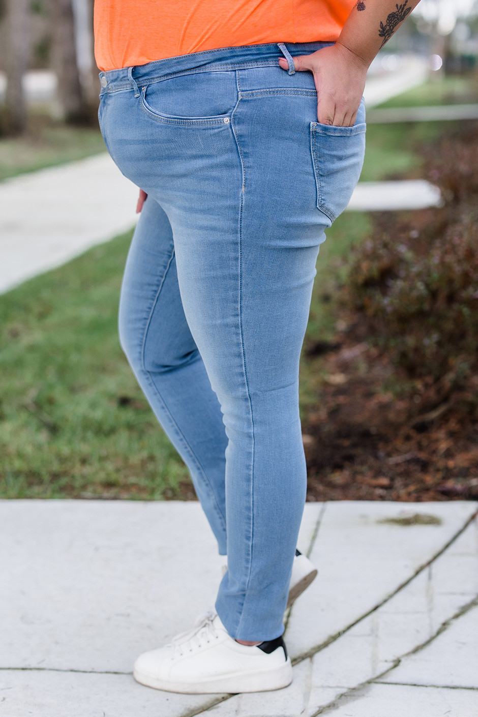 It is an add to cart kinda day here! These are the perfect lightweight jeans, they almost feel like a jegging! This wash is so perfect and has me dreaming of spring! I love this style as it will be so cute casual and since there is no distressing it's easy to dress up as well! I find them a bit long, but a little cuff solves the problem! I am in an XL and it's the size I will purchase!