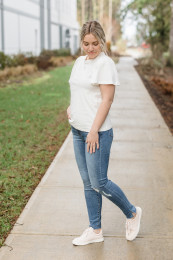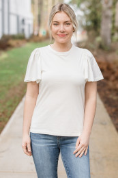 The Light & Airy Top is the transitional piece of the season! The fluttery sleeves elevate this classic style and can bring jeans and a tee to another level!