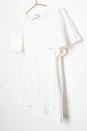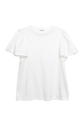 How fun is this cute little top?! It has me dreaming of spring! It's 100% organic cotton and feels amazing on the skin. It's light but not super see-through. I am wearing my true size small and found it to fit very true to size. It's not fitted but not super loose either. I absolutely love the fluttery sleeves! They're not too big, just the perfect amount of flutter to a cute detail!
