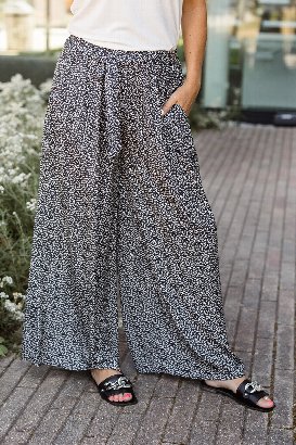 These pants are a flattering wide-leg style, and feature an attached tie at the waist, an elastic waistband, and everyone's favourite - pockets! They have a cute small floral print and are super lightweight and flowy, making them perfect for the warm summer months.