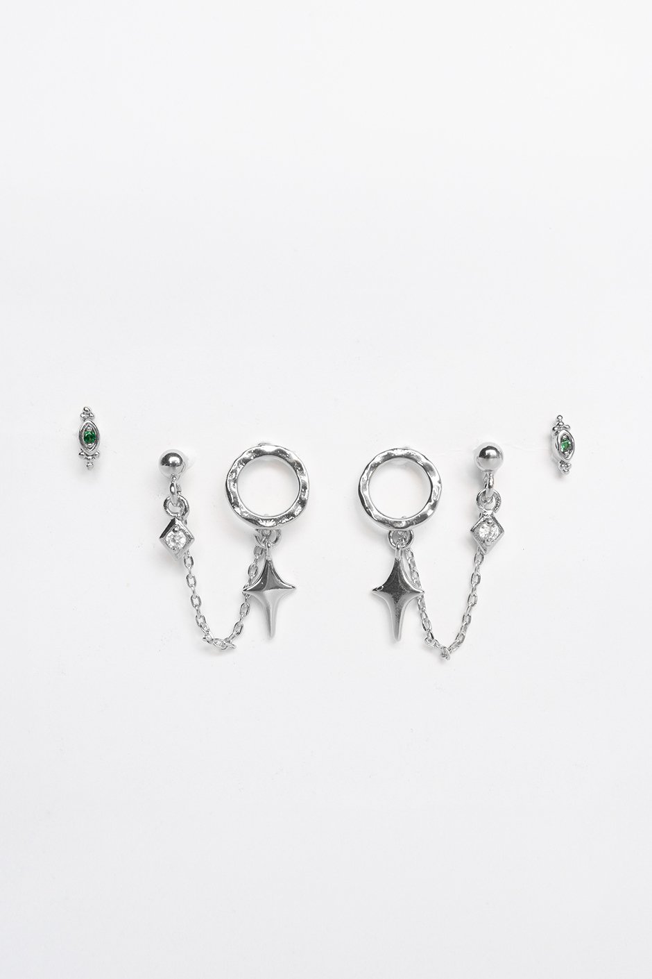 Turn heads with our Shooting Star Earring Stack, where one earring connects to another with a chic chain accent. Whether you're rocking them solo or stacking them up, these earrings are your new go-to for expressing your unique vibe with every outfit!