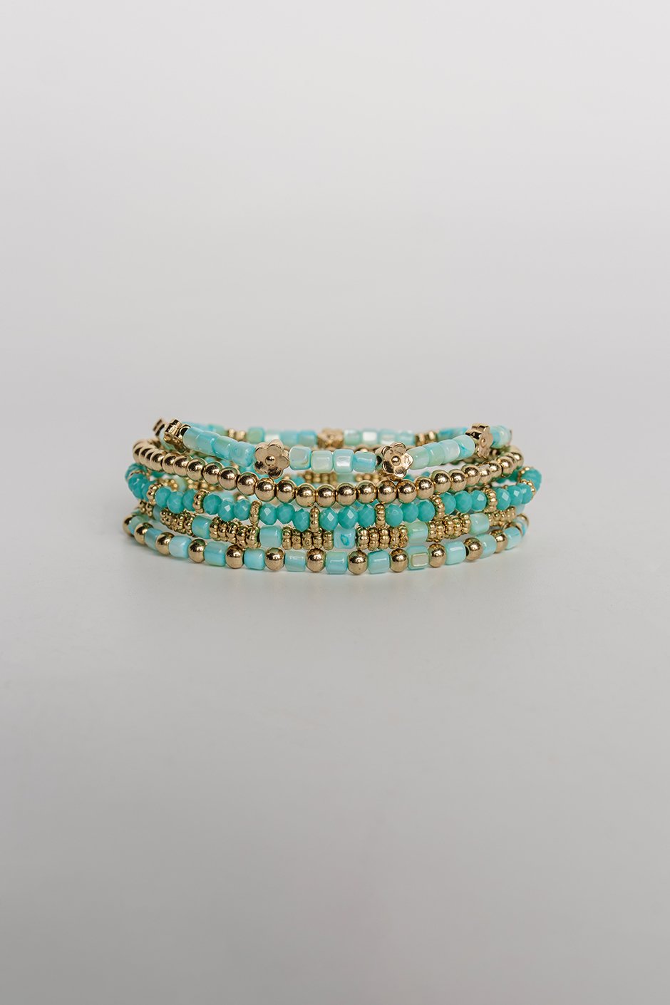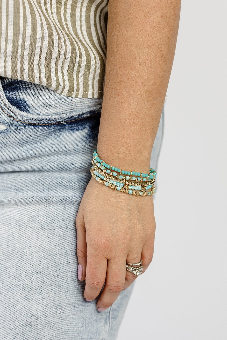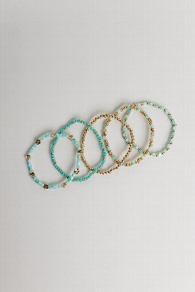 Introducing the Roxy Bracelet set - 5 stackable bracelets for your everyday look! With a mix of shells, beads, and metal each bracelet has its own unique charm. And, no more fussing with clasps or struggling to get the perfect fit. Just slide them on and you're ready to go! Mix, match, stack, and style them in the way you like!
