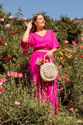 This set is so pretty!! The maxi skirt is flowy and comfy, perfect for those sunny days when you just want to feel breezy. The cropped blouse has an elastic waist that’s so comfy and gives a perfect fit without any fuss. The whole set has this fun vibe that’s perfect for casual outings or dress it up with heels and accessories for a wedding! I'm wearing the 1XL and loved the fit.