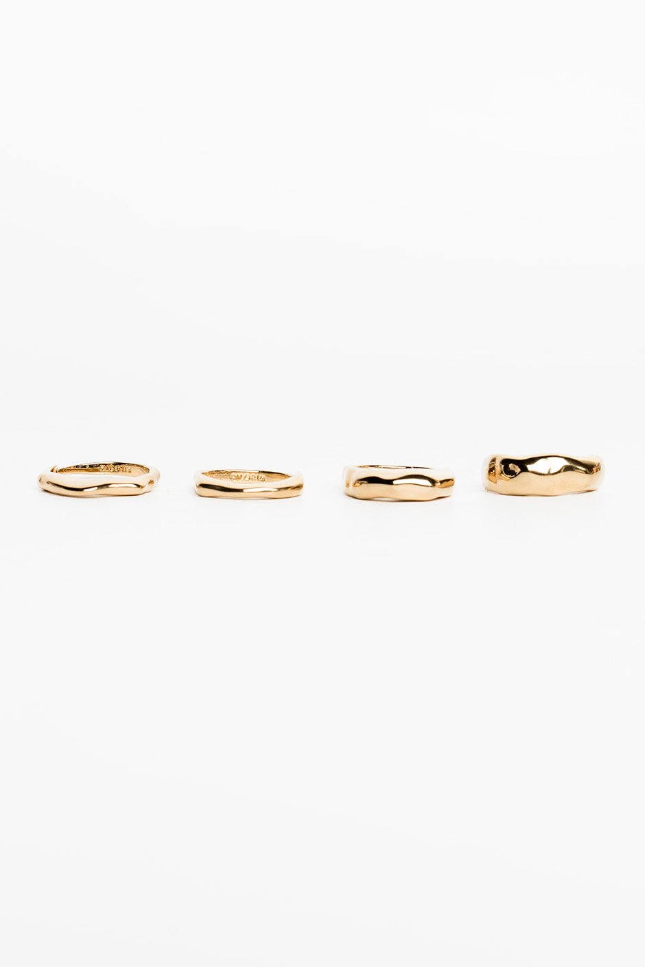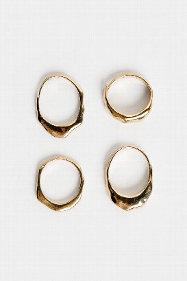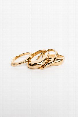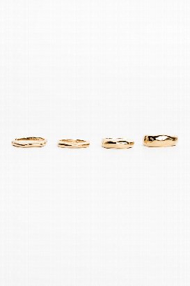 Stay golden with Pilgrim's 4-piece ring set. Gold- or silver-plated with wavy, dynamic designs for a chic, stacked look. Handcrafted feel, shiny finish, and eco-friendly—crafted from 99% recycled materials. Perfect for mixing and matching your style.