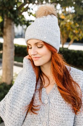 Stay cozy and stylish with this adorable toque featuring a fluffy faux fur pom-pom on top and shimmering pearl accents all around. Perfect for chilly days or festive outings, this beanie adds a fun touch of glam to any outfit while keeping you snug and warm!